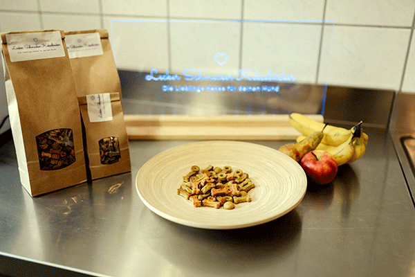 Die Zutaten kommen von regionalen Händlern aus der Umgebung. Ich produziere immer frisch, das heißt, ich habe keine großen Mengen auf Lager, was hin und wieder zu kleinen Lieferverzögerungen führen kann. Dafür erhält ihr Liebling aber immer frische und schmackhafte Leckerlis.